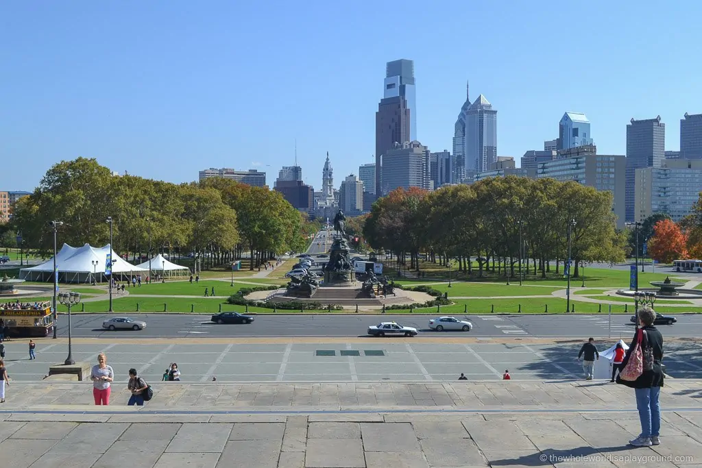 How to do a day trip from New York to Philadelphia: it’s a 90 minute train journey trains from Penn Station in Manhattan to Philadelphia and there’s a number of bus options taking around 2 hours and 30 minutes each way.