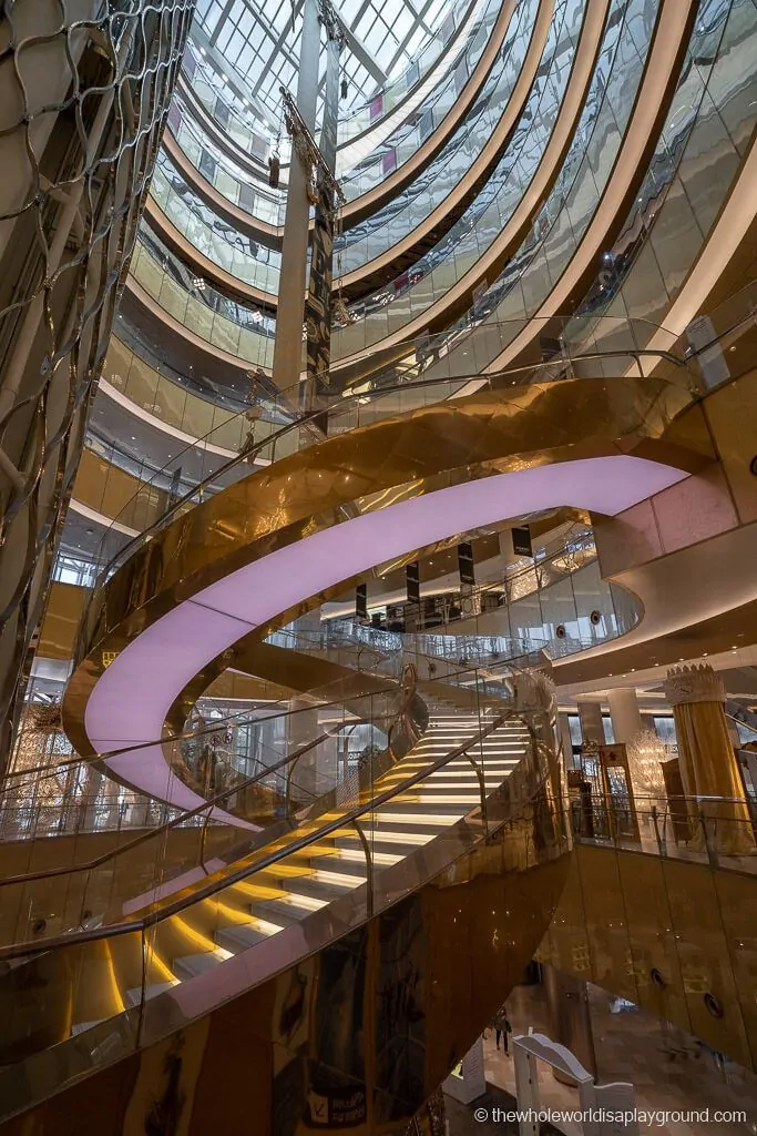 Best Seoul Instagram spots tip: after descending from the dizzy heights of Seoul Tower make sure to stop by the adjoining Lotte World Mall and check out the incredible staircase, a focal point of the luxury shopping center.