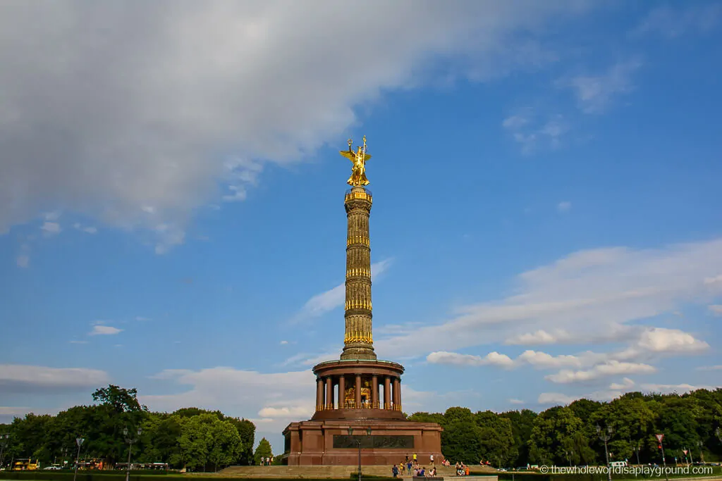 Berlin photo spots when to go: Definitely try to visit the Victory Column around the sunset golden hour when the evening light hits the column and the golden Victoria sculpture.