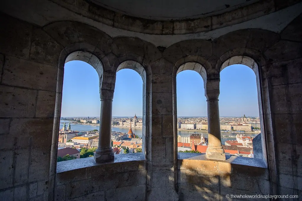 Budapest sightseeing tip: it is worth paying the little extra fee to get access to the turrets of the bastion where the panoramic views of Budapest are breathtaking.