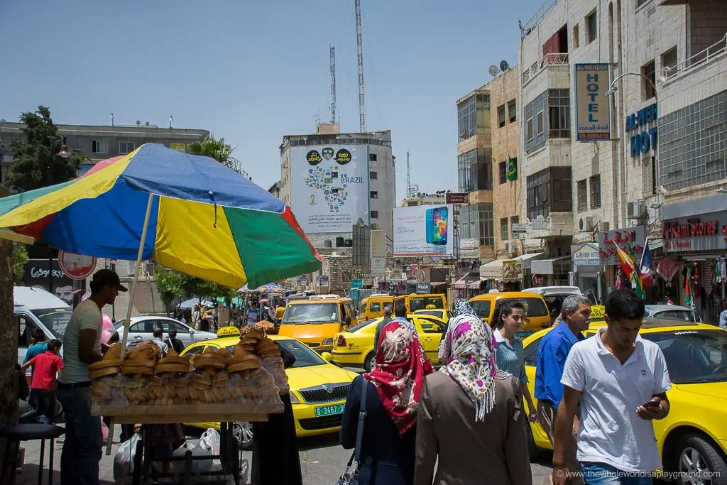 The bus to Ramallah departs from the Palestine Bus Station which is opposite Damascus Gate on Nablus Road (see map below). Bus 218 (and sometimes the 219) travels to Ramallah so check with the bus driver when you get on. The journey is around 45 minutes and the cost is 8NIS. Stay on the bus at the Qalandia border crossing. Palestinians have to disembark but children, the elderly and foreigners stay on the bus and the border soldiers will come onto the bus to check visas and passports.
